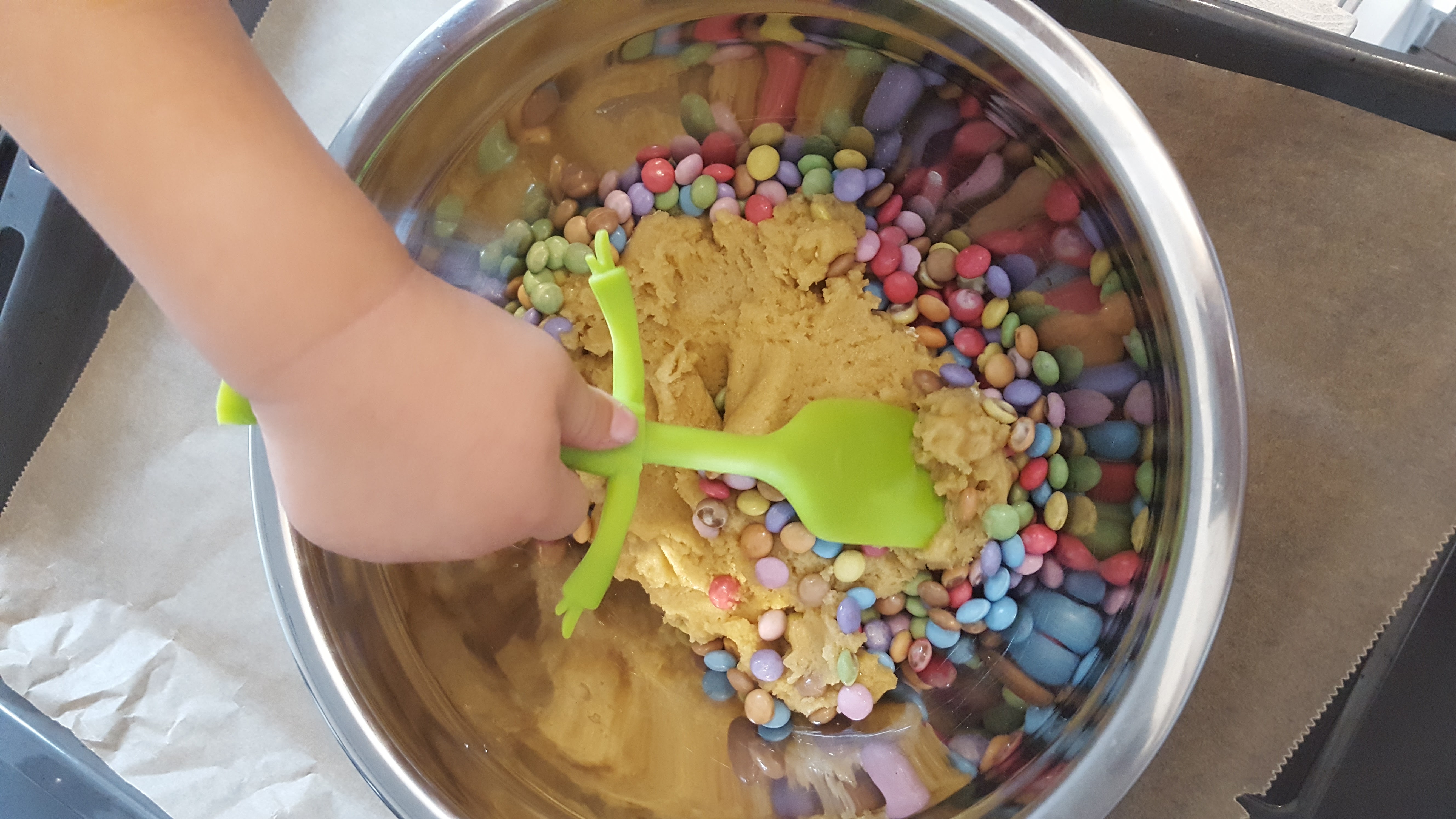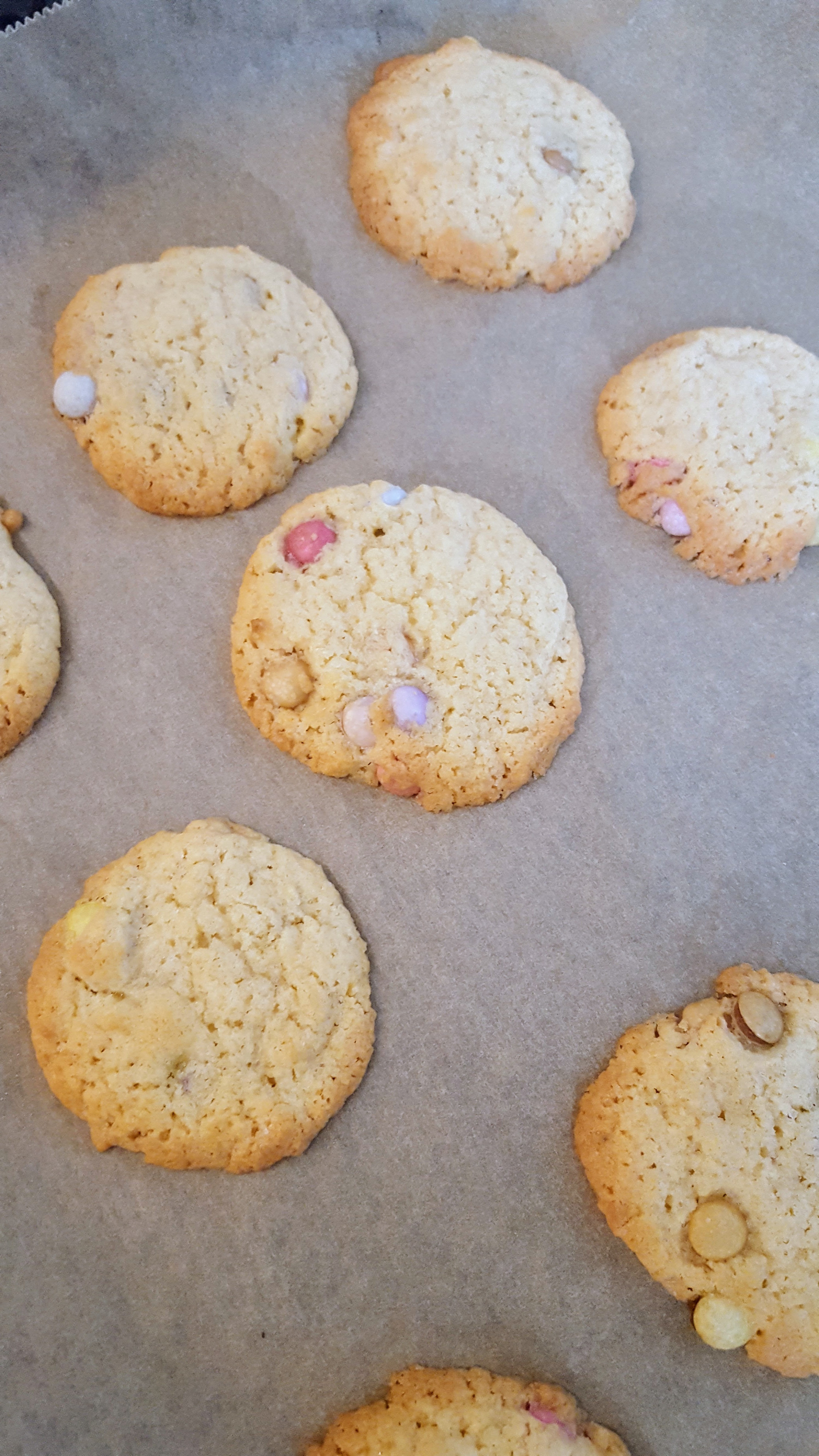 Da einige von Euch lieb nach dem Rezept für die Smarties-Cookies gefragt haben, hier das Blitzrezept für die Köstlichkeiten: